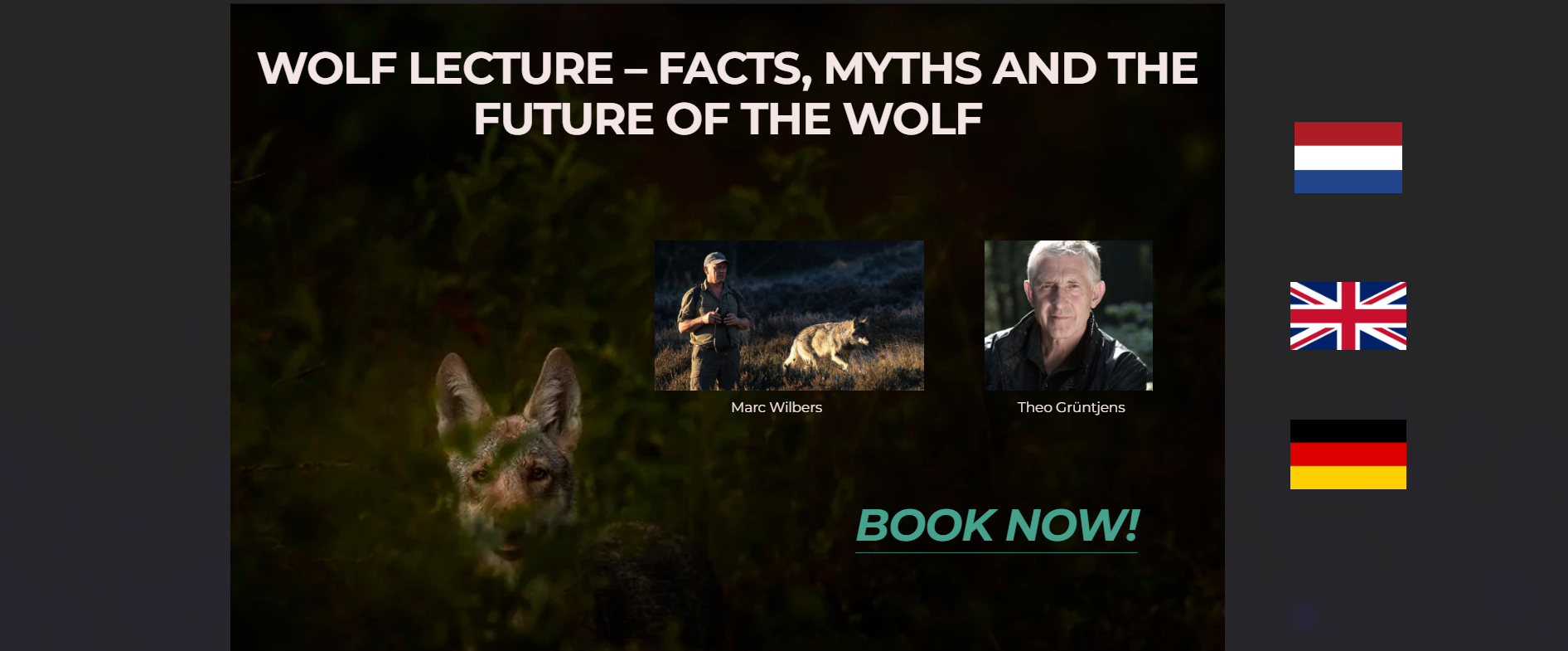 Our wolf lecture with experts Theo Greuntjens and Marc Wilbers is now available for booking. Discover wolf behaviour, ecology, and coexistence in this engaging presentation, online or on location.